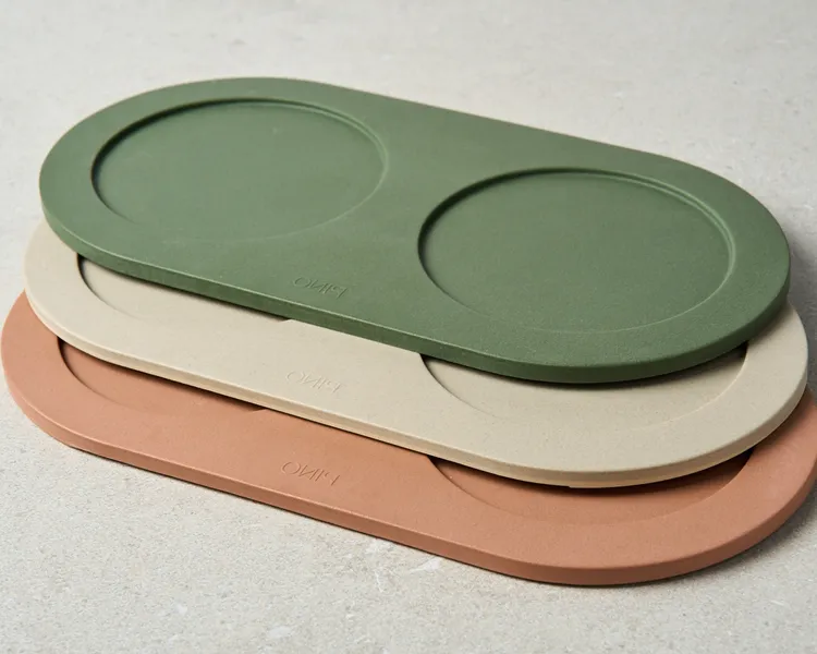 Dissenyada per mantenir els bols de menjar i aigua al seu lloc, evita relliscades i vessaments mentre protegeix el terra de taques i ratllades. La seva forma estable facilita la neteja de l'entorn d'alimentació. Fabricada a mà amb materials naturals, cada peça pot presentar petites variacions que la fan única. Apte per a interiors i exteriors coberts. Compatible amb bols de mida mitjana o gran.