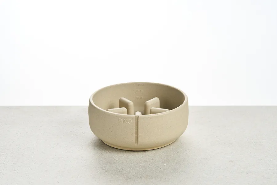Bol antivoracitat creat per millorar la digestió i afavorir una alimentació més tranquil·la en gossos que mengen amb massa rapidesa. El seu disseny interior actua com a slow feeder, ajudant a reduir atracaments, gasos i molèsties estomacals. Està fabricat a mà a Bèlgica amb Pino Sandstone®, un material compost per sorra natural, pigments minerals i un component estructural que aporta resistència i estabilitat. Cada peça presenta variacions pròpies del seu procés artesanal. És inodor i no absorbeix olors, ideal per a gossos amb un olfacte sensible. També és apte per al rentavaixelles a 30 °C a la safata superior i es pot guardar a la nevera per mantenir el menjar fresc. Inclou marques de mesurament per controlar la quantitat d’aliment i facilitar racions equilibrades. El material no és tòxic i és hipoal·lergènic, lliure de BPA, ftalats, PVC i plom. Disponible en tres mides, perfecte per a pinso, menjar humit, dieta BARF o receptes casolanes.