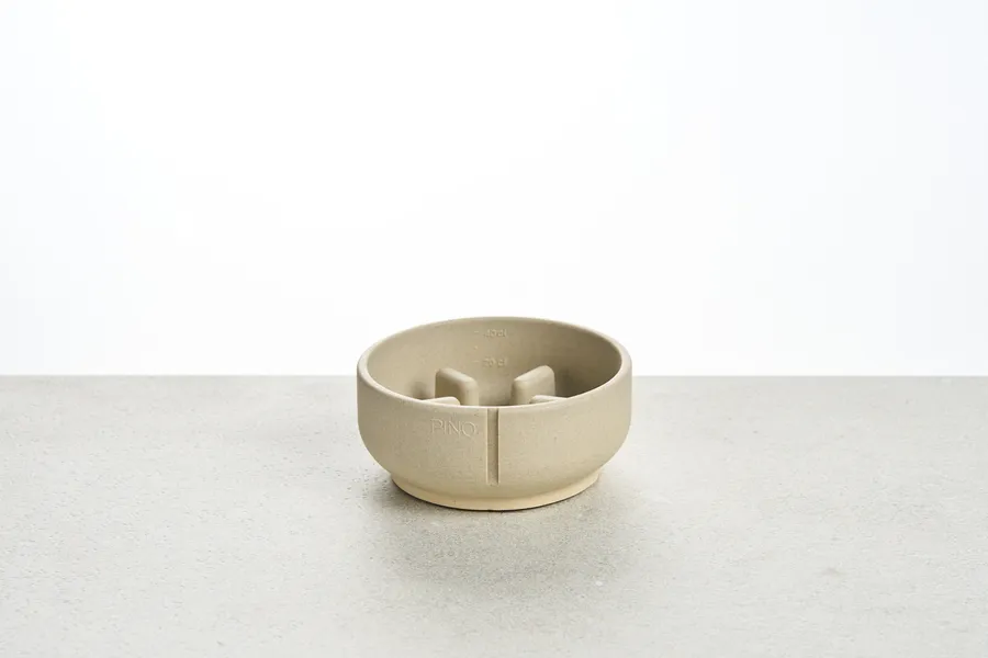 Bol antivoracitat creat per millorar la digestió i afavorir una alimentació més tranquil·la en gossos que mengen amb massa rapidesa. El seu disseny interior actua com a slow feeder, ajudant a reduir atracaments, gasos i molèsties estomacals. Està fabricat a mà a Bèlgica amb Pino Sandstone®, un material compost per sorra natural, pigments minerals i un component estructural que aporta resistència i estabilitat. Cada peça presenta variacions pròpies del seu procés artesanal. És inodor i no absorbeix olors, ideal per a gossos amb un olfacte sensible. També és apte per al rentavaixelles a 30 °C a la safata superior i es pot guardar a la nevera per mantenir el menjar fresc. Inclou marques de mesurament per controlar la quantitat d’aliment i facilitar racions equilibrades. El material no és tòxic i és hipoal·lergènic, lliure de BPA, ftalats, PVC i plom. Disponible en tres mides, perfecte per a pinso, menjar humit, dieta BARF o receptes casolanes.