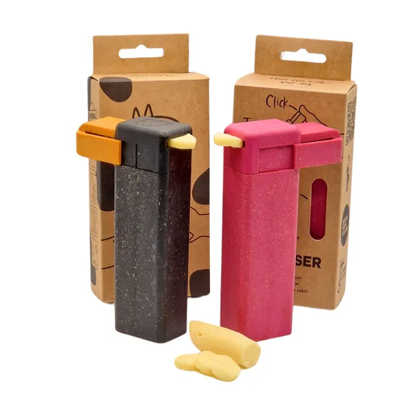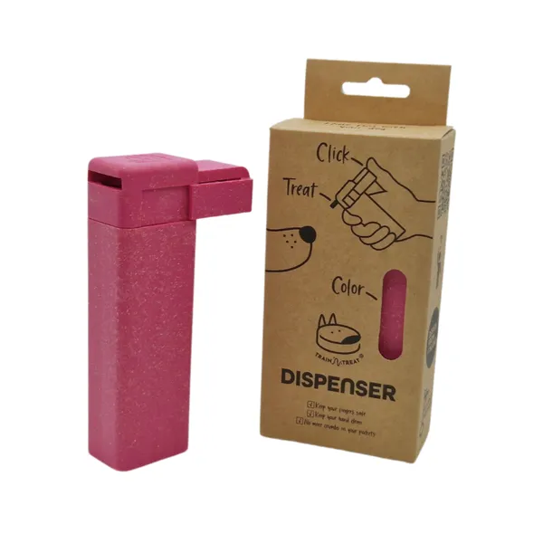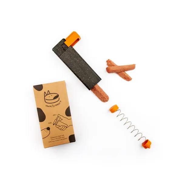 Entrena millor. Més ràpid. Sense embrutar-te. Dispensador de premis per a gossos amb clicker integrat, fabricat amb materials sostenibles. Recompensa i so en un sol gest. ✔ Recompensa immediata ✔ Mans netes i protegides ✔ Compatible amb salsitxes sense pell, formatge o rotllets tous ✔ Fins a 20–25 premis per càrrega ✔ Apte per a rentaplats ✔ Fabricat a Finlàndia en biocompost sostenible Lleuger, compacte i fàcil de portar a la butxaca. Reforç positiu sense estrès i més connexió amb el teu gos.