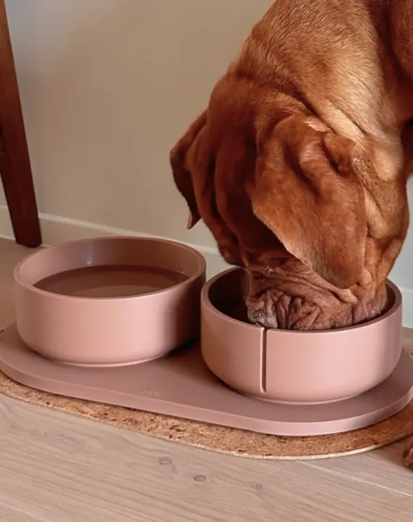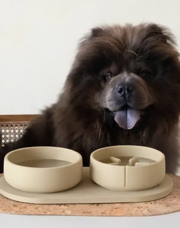 Dog Feeder and Water Bowl Set with Non-Slip Base A kit designed for your dog to enjoy daily meals and drinks with maximum comfort. It includes a slow feeder that supports healthy digestion by preventing gulping, a classic bowl ideal for water or any type of food, and a non-slip base that reduces spills and protects the floor. Available in two sizes: -Medium (M): bowls 18 cm Ø × 7.8 cm · 1.05 kg + base 22 × 41.5 cm -Large (L): bowls 21.6 cm Ø × 9 cm · 1.42 kg + base 25.6 × 48.7 cm Three handcrafted and sustainable pieces that create a practical, elegant, and safe feeding station, made by hand in European workshops with natural and durable materials. Choosing this set is a more advantageous option than purchasing each piece separately, providing added value without compromising the artisanal quality that defines it. Each element is designed to accompany your dog’s daily routine with safety, stability, and durability, reflecting a sustainable and sophisticated lifestyle.