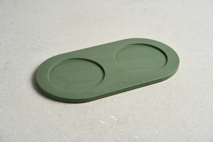 Base para comedero y bebedero sostenible de perro mediano, hecha principalmente de arena natural, color verde bosque