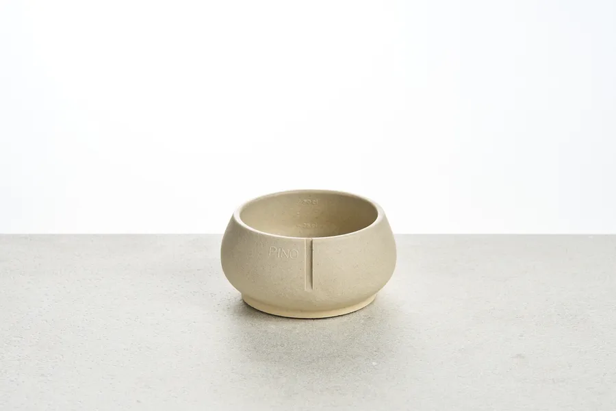 Comedero pequeño sostenible y artesanal para perros de orejas largas Pino color arena, cuenco duradero y estable.