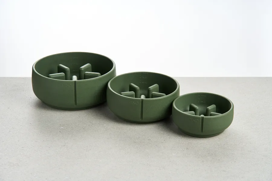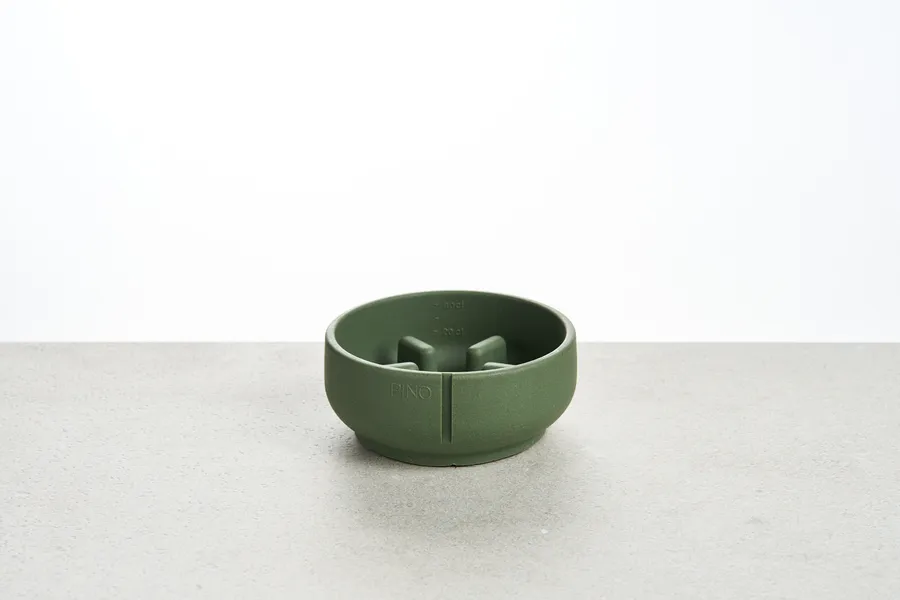 Cuenco antivoracidad creado para mejorar la digestión y fomentar una alimentación más tranquila en perros que comen con demasiada rapidez. Su diseño interior actúa como slow feeder, ayudando a reducir atracones, gases y molestias estomacales. Está fabricado a mano en Bélgica con Pino Sandstone®, un material compuesto por arena natural, pigmentos minerales y un componente estructural que aporta resistencia y estabilidad. Cada pieza presenta variaciones propias de su proceso artesanal. Es inodoro y no absorbe olores, ideal para perros con olfato sensible. También es apto para lavavajillas a 30 °C en la bandeja superior y puede guardarse en el frigorífico para mantener fresca la comida. Incluye marcas de medición para controlar la cantidad de alimento y facilitar raciones equilibradas. El material no es tóxico y es hipoalergénico, libre de BPA, ftalatos, PVC y plomo. Disponible en tres tamaños, perfecto para pienso, comida húmeda, dieta BARF o recetas caseras.